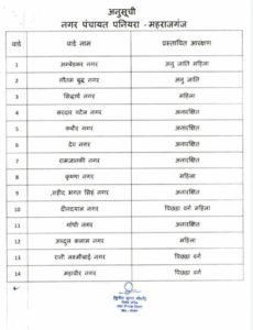 महराजगंज:महराजगंज जिले में वार्ड आरक्षण की सूची जारी,एक हफ्ते में देनी होगी आपत्ति, देखिए आरक्षण की पूरी सूची