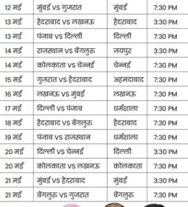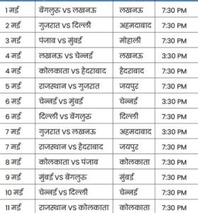 लीग स्टेज के मुकाबलों के बाद प्लेऑफ के 4 मुकाबले होंगे। पॉइंट्स टेबल की टॉप-4 टीमें प्लेऑफ में पहुंचेंगी। IPL के 70 लीग स्टेज के मुकाबलों का शेड्यूल ही जारी हुआ है। प्लेऑफ का शेड्यूल जारी नहीं हुआ। लेकिन, 23 मई को क्वालिफायर-1 खेले जाने की उम्मीद है। 24 मई को एलिमिनेटर और 26 मई को क्वालिफायर-2 हो सकता है। 28 मई को फाइनल की तारीख तय हो चुकी है।