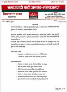 महराजगंज जिले में सपा ने घोषित की प्रत्याशियों की सूची,