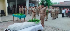 फायर सर्विस कंट्रोल रूम में तैनात आरक्षी (फायरमैन) संदीप यादव की मृत्यु उपरांत।पार्थिव शरीर को फायर स्टेशन में शोक सलामी दी गयी।इस मौके पर पुलिस अधिकारी/कर्मचारीगण द्वारा पार्थिव शरीर पर पुष्प चक्र अर्पित कर भावभीनी श्रद्धांजलि दी गयी।