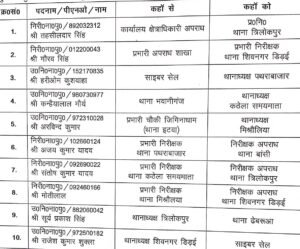 जिसमे तहसीलदार सिंह को प्रभारी निरीक्षक त्रिलोकपुर,गौरव सिंह को प्रभारी निरीक्षक शिवनगर डिडई,हरिओम कुशवाहा को थानाध्यक्ष पथराबाजार,कन्हैया लाल मौर्य को थानाध्यक्ष कठेला समयमाता,अरविंद कुमार को थानाध्यक्ष मिश्रौलिया का कार्यभार सौंपा गया है।अब बचें पाँच विगत में रह चुके थानाप्रभारी और थानेदारों को बाईपास कर दिया गया है।
