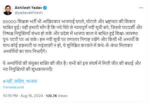 — Akhilesh Yadav (@yadavakhilesh) August 16, 2024