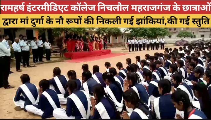 आज महराजगंज जिले के निचलौल क्षेत्र के उपनगर स्थित रामहर्ष इंटरमीडिएट कॉलेज निचलौल महराजगंज में कॉलेज की छात्राओं ने मां दुर्गा के नौ रूपों की झांकी के साथ – साथ दुर्गा मां की स्तुति की गई।