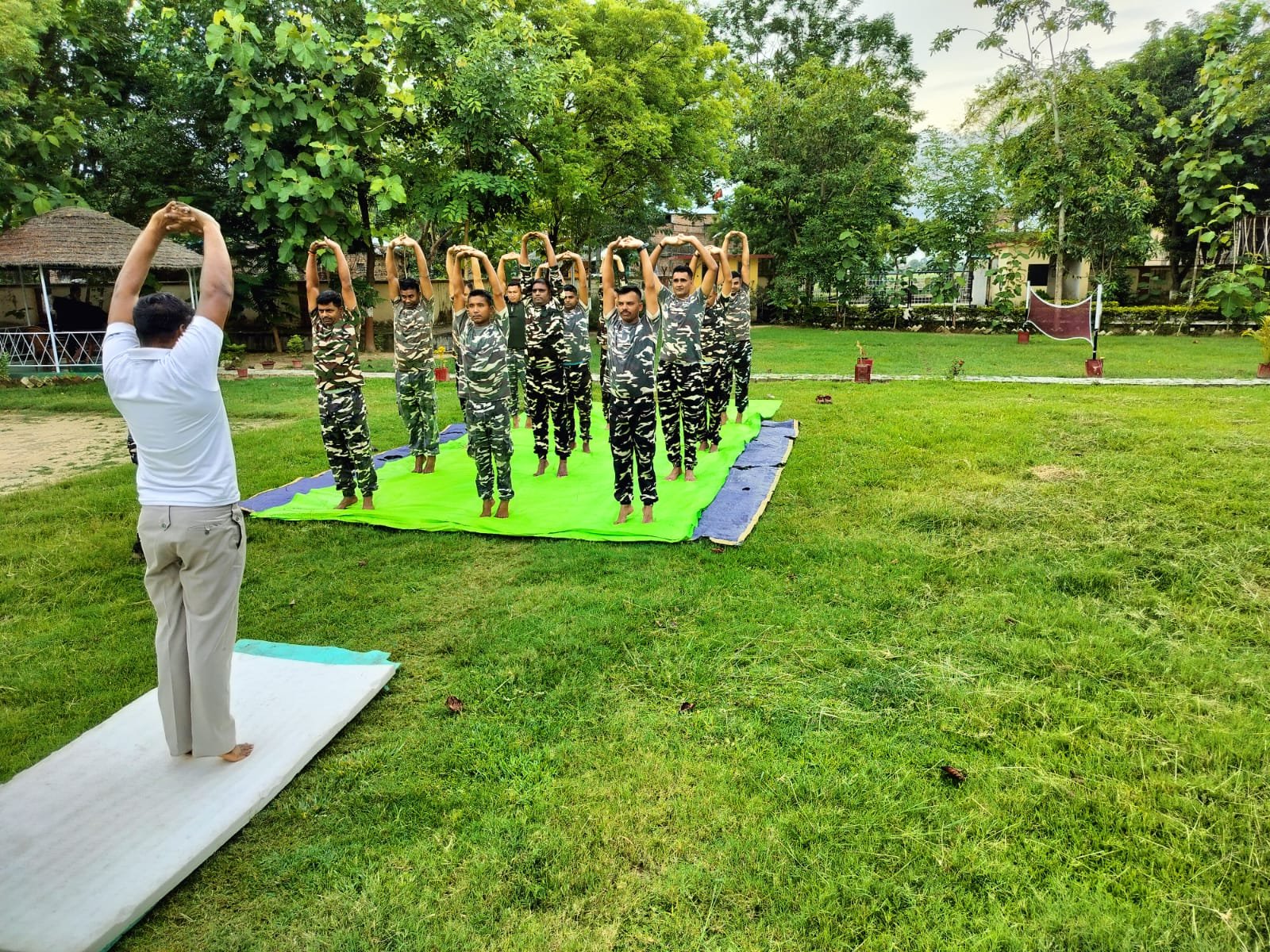 महराजगंज जनपद के ठूठीबारी स्थित 22वीं वाहिनी सशस्त्र सीमा बल कैंप में एक विशेष योगाभ्यास शिविर का आयोजन किया गया। इस शिविर में एसएसबी के अधिकारियों और जवानों ने बड़े उत्साह के साथ भाग लिया, जहाँ उन्होंने विभिन्न योगासनों, प्राणायाम और ध्यान विधियों का अभ्यास किया।