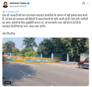 अखिलेश यादव ने सवाल उठाया कि, “ये लोग माल्यार्पण तक नहीं करने देते हैं, ये स्वतंत्रता सेनानियों का मान-आदर क्या करेंगे।” यह पोस्ट स्वतंत्रता सेनानियों के सम्मान और विपक्षी नेताओं पर सरकारी निगरानी के मुद्दे को लेकर राजनीतिक विवाद खड़ा कर सकता है।