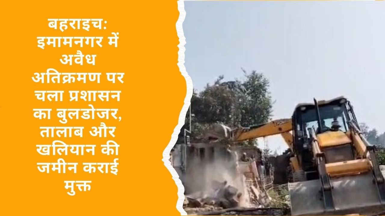 बहराइच जनपद के थाना रूपईडीहा अंतर्गत इमामनगर में मंगलवार को प्रशासन ने अवैध अतिक्रमण के विरुद्ध बड़ी कार्रवाई की है। एसडीएम नानपारा की मौजूदगी में भारी पुलिस बल और एसएसबी (SSB) की टीम ने खलियान व तालाब की सरकारी भूमि पर किए गए अवैध निर्माण को बुलडोजर चलाकर जमींदोज कर दिया।