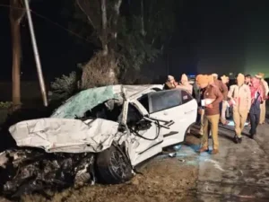 बुलंदशहरजनपद के बुलंदशहर-मेरठ हाईवे पर सोमवार रात एक दर्दनाक सड़क हादसे में कार सवार तीन दोस्तों की मौत हो गई। मृतकों में मेरठ के भाजपा एमएलसी अश्वनी त्यागी के भतीजे अंकित त्यागी (37) भी शामिल हैं। हादसा गुलावठी थाना क्षेत्र के चिड़ावक कट के पास रात करीब 11 बजे हुआ।