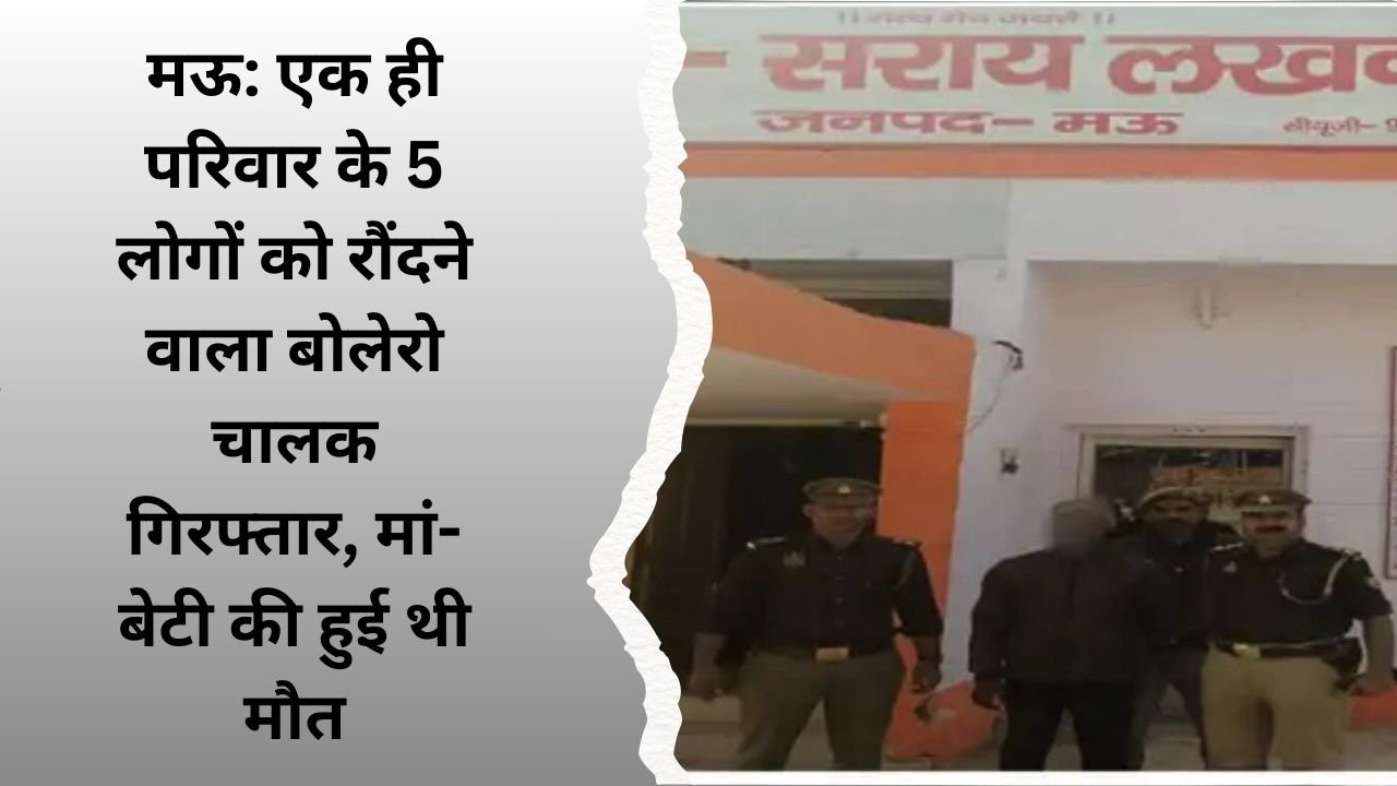 मऊ जनपद के सरायलखंसी थाना क्षेत्र में 19 जनवरी को हुए हृदयविदारक सड़क हादसे में पुलिस ने बड़ी कामयाबी हासिल की है। पुलिस ने ताजोपुर गांव में एक ही परिवार के पांच लोगों को रौंदने वाले मुख्य आरोपी चालक राजन राजभर को गिरफ्तार कर लिया है। साथ ही, घटना में प्रयुक्त बोलेरो वाहन भी बरामद कर लिया गया है।
