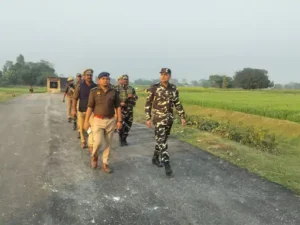 महराजगंज जनपद के आगामी नेपाल चुनाव और होली पर्व के मद्देनजर भारत-नेपाल सीमा पर सुरक्षा व्यवस्था चाक-चौबंद कर दी गई है। क्षेत्राधिकारी अंकुर गौतम के नेतृत्व में पुलिस और सशस्त्र सीमा बल ) के जवानों ने नौतनवा व सोनौली क्षेत्र के सीमावर्ती गांवों में सघन पेट्रोलिंग अभियान चलाया।