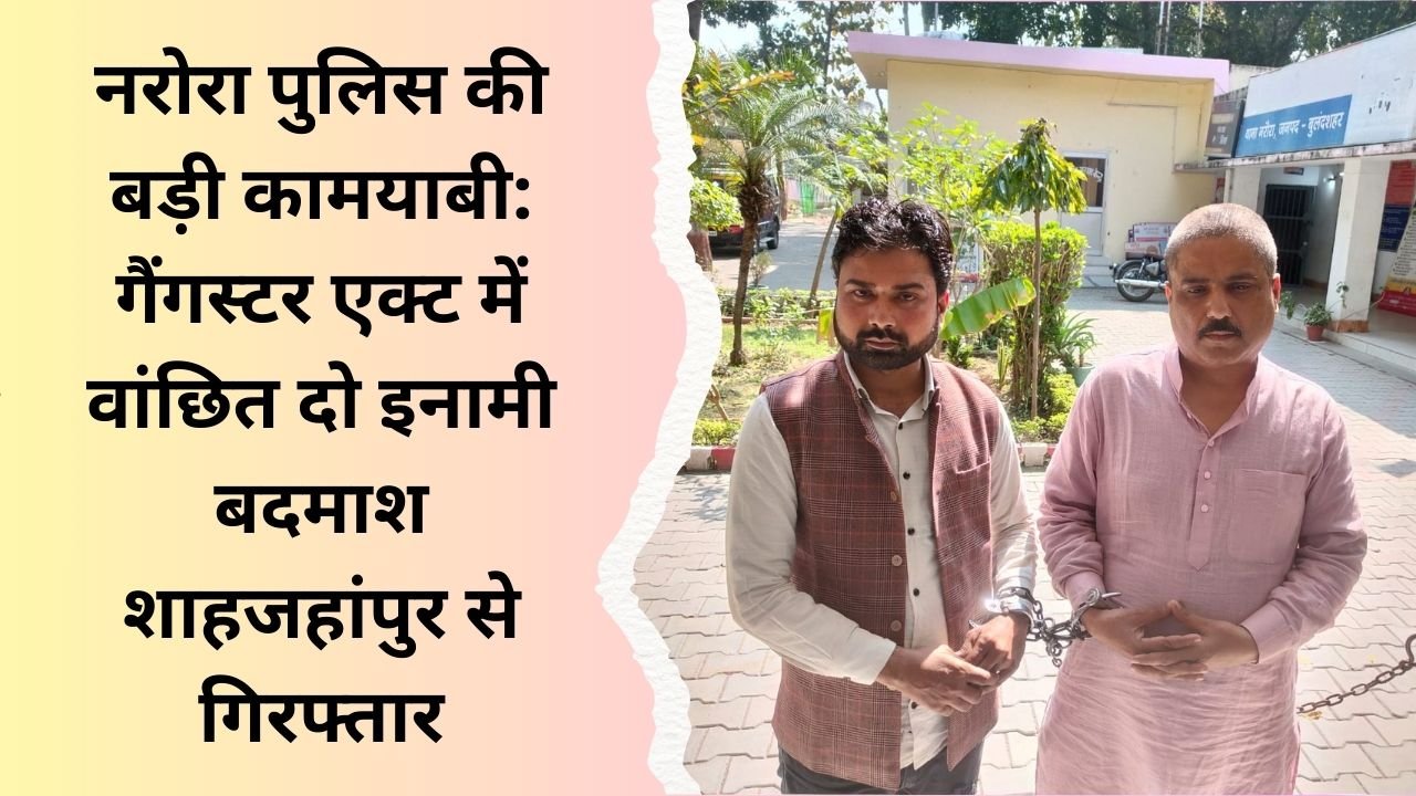 बुलंदशहर जनपद के वरिष्ठ पुलिस अधीक्षक दिनेश कुमार सिंह के नेतृत्व में चलाए जा रहे अपराध नियंत्रण अभियान के तहत नरोरा पुलिस को बड़ी सफलता मिली है। पुलिस टीम ने गैंगस्टर एक्ट में लंबे समय से वांछित चल रहे दो इनामी बदमाशों को शाहजहांपुर से धर दबोचा।