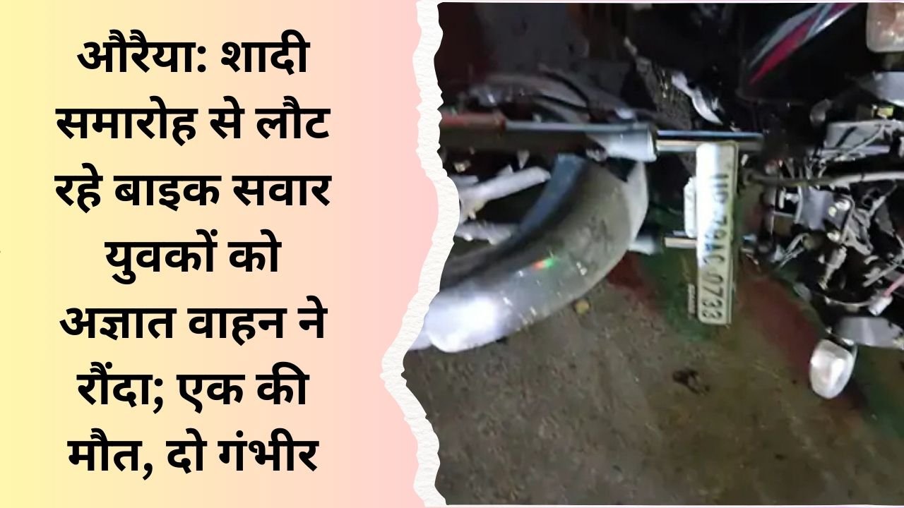 मृतक की पहचान जालौन जिले के सनगढ़ निवासी संजू निषाद के रूप में हुई है। जानकारी के अनुसार, संजू अपने दो साथियों के साथ औरैया में एक गेस्ट हाउस में आयोजित शादी समारोह में शामिल होने आया था। शनिवार देर रात करीब 2 बजे जब तीनों बाइक से वापस लौट रहे थे, तभी आंबेडकर नगर चौराहे के पास एक अज्ञात तेज रफ्तार वाहन ने उन्हें जोरदार टक्कर मार दी।