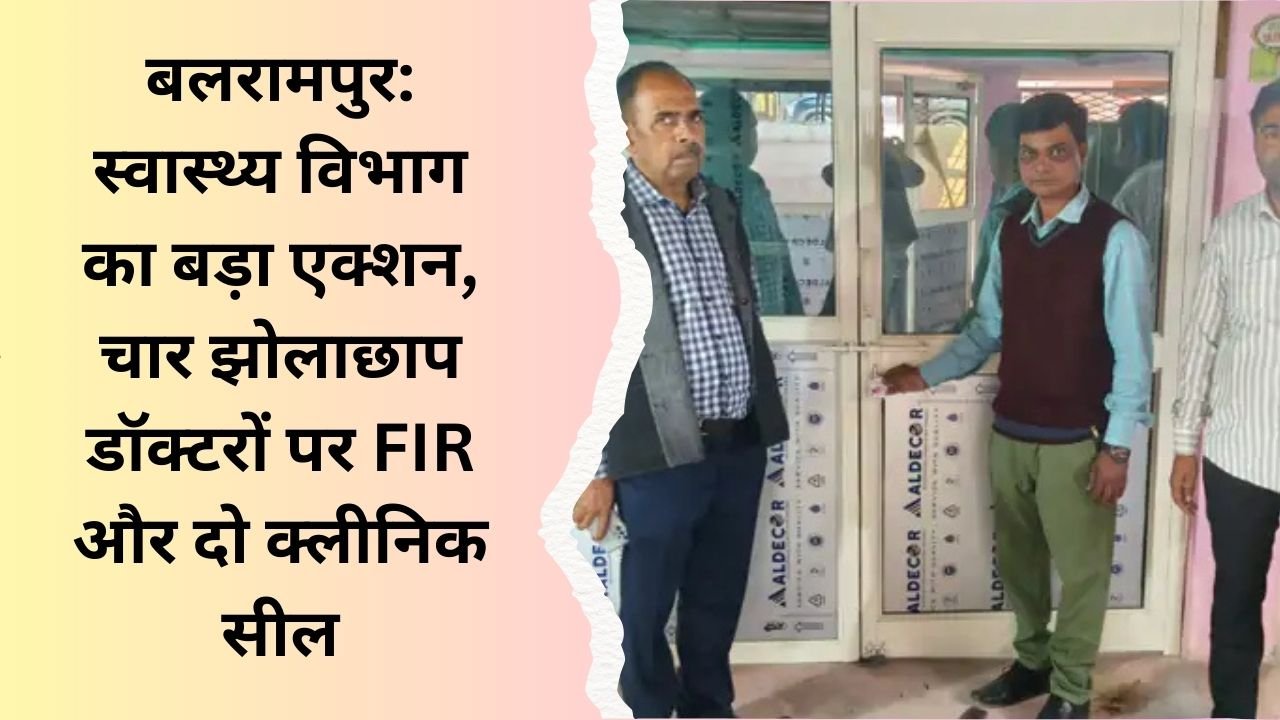 बलरामपुर जनपद के स्वास्थ्य विभाग ने जनस्वास्थ्य से खिलवाड़ करने वाले अवैध क्लीनिकों के खिलाफ सख्त रुख अपनाते हुए बड़ी कार्रवाई की है। संयुक्त टीम ने छापेमारी कर चार झोलाछाप डॉक्टरों के खिलाफ एफआईआर दर्ज कराई है और दो निजी क्लीनिकों को सील कर दिया है।