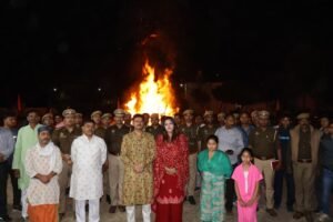 रिजर्व पुलिस लाइन में आयोजित इस कार्यक्रम में जिले के वरिष्ठ पुलिस अधिकारियों, कर्मचारी गणों और उनके परिजनों ने बढ़-चढ़कर हिस्सा लिया। एसपी अभिषेक भारती और एएसपी आलोक मिश्रा ने पूरे विधि-विधान से पूजन अर्चन किया, जिसके पश्चात होलिका दहन की रस्म पूरी की गई। इस दौरान पुलिस परिवार के बीच आपसी प्रेम और सौहार्द का अद्भुत नजारा देखने को मिला।