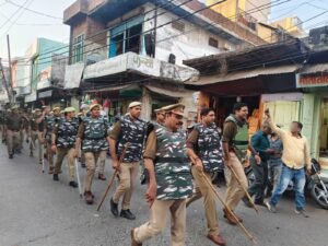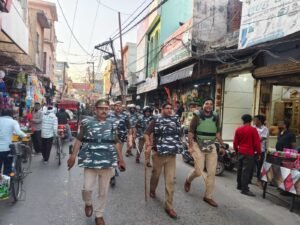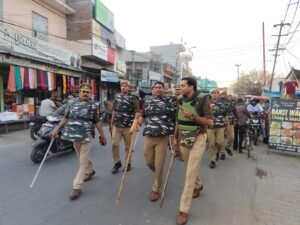 बुलंदशहर जनपद के रंगों के महापर्व होली को शांतिपूर्ण और सौहार्दपूर्ण वातावरण में संपन्न कराने के लिए बुलंदशहर पुलिस पूरी तरह मुस्तैद है। मंगलवार को वरिष्ठ पुलिस अधीक्षक दिनेश कुमार सिंह के निर्देशन में अपर पुलिस अधीक्षक (ग्रामीण) डॉ. तेजवीर सिंह ने भारी पुलिस बल के साथ थाना जहांगीराबाद क्षेत्र के संवेदनशील इलाकों में पैदल मार्च किया।