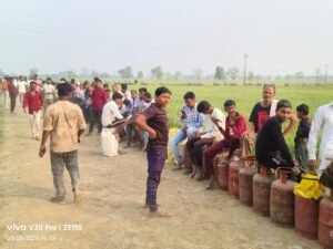 महराजगंज जनपद के ठूठीबारी स्थित मां शक्ति एचपी गैस ग्रामीण वितरक एजेंसी पर शुक्रवार को रसोई गैस की किल्लत के चलते जबरदस्त अफरा-तफरी का माहौल रहा। आपूर्ति की कमी के कारण सुबह से ही हजारों उपभोक्ता खाली सिलेंडर लेकर गोदाम के बाहर लंबी कतारों में खड़े नजर आए। स्थिति यह थी कि भीड़ गोदाम से निकलकर मुख्य सड़क तक फैल गई, जिससे आवागमन भी प्रभावित हुआ।