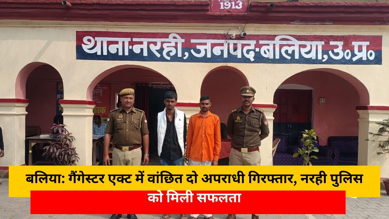 बलिया जनपद में अपराध एवं अपराधियों के विरुद्ध चलाए जा रहे विशेष अभियान के तहत नरही थाना पुलिस ने बड़ी सफलता हासिल की है। पुलिस टीम ने गैंगेस्टर एक्ट से संबंधित दो वांछित अभियुक्तों को गिरफ्तार कर सलाखों के पीछे भेज दिया है।