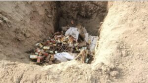 पुलिस प्रशासन द्वारा कुल 87 आबकारी अधिनियम के अभियोगों से संबंधित 357 लीटर अवैध देशी शराब को विनष्ट करने की प्रक्रिया पूरी की गई। इस दौरान थाना परिसर में जेसीबी मशीन से गहरा गड्ढा खुदवाया गया, जिसमें सभी अवैध शराब की बोतलों और पाउच को डालकर पूरी तरह नष्ट कर जमीन में दबा दिया गया।