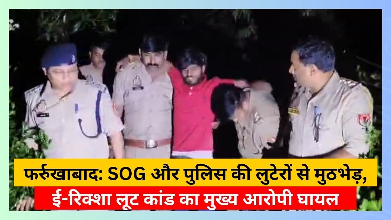 फर्रुखाबाद जनपद में अपराधियों के विरुद्ध चलाए जा रहे अभियान के तहत एसओजी (SOG) और स्थानीय पुलिस टीम को बड़ी सफलता हाथ लगी है। कल ई-रिक्शा चालक के साथ हुई लूट की घटना का खुलासा करते हुए पुलिस ने मुठभेड़ के बाद दो बदमाशों को हिरासत में लिया है। इस जवाबी कार्रवाई में मुख्य आरोपी पैर में गोली लगने से घायल हो गया है।