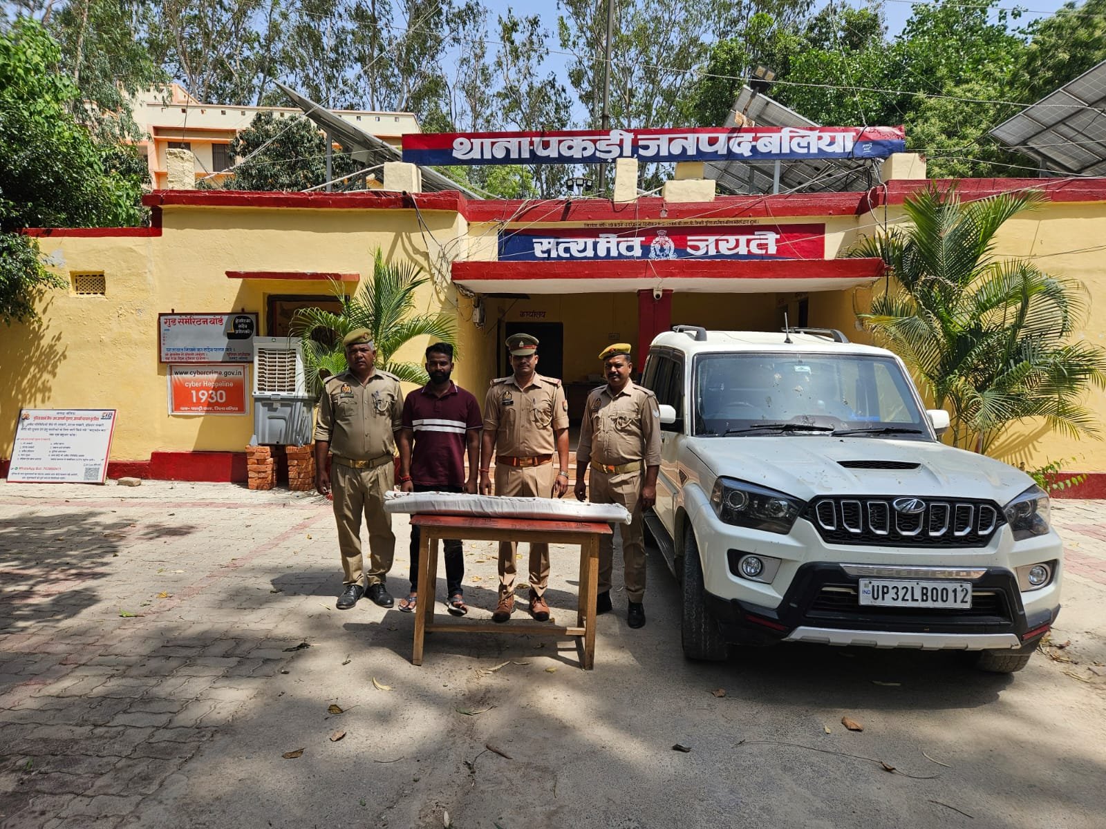 बलिया जनपद में अपराधियों और वांछित अभियुक्तों के विरुद्ध चलाए जा रहे सघन अभियान के तहत पकड़ी थाना पुलिस ने बड़ी सफलता हासिल की है। पुलिस ने जानलेवा हमले के मामले में वांछित एक अभियुक्त को गिरफ्तार कर उसके पास से वारदात में प्रयुक्त वाहन और लाठियां बरामद की हैं।