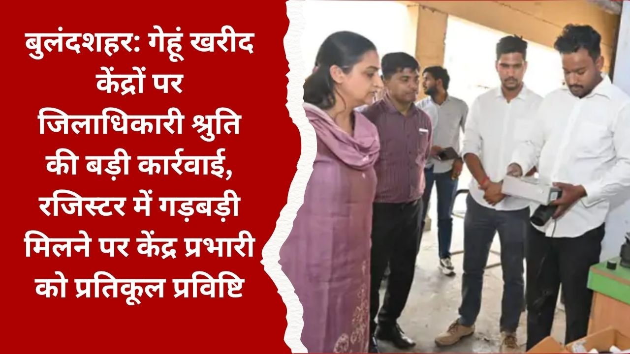 बुलंदशहर: गेहूं खरीद केंद्रों पर जिलाधिकारी श्रुति की बड़ी कार्रवाई; रजिस्टर में गड़बड़ी मिलने पर केंद्र प्रभारी को प्रतिकूल प्रविष्टि April 17, 2026
