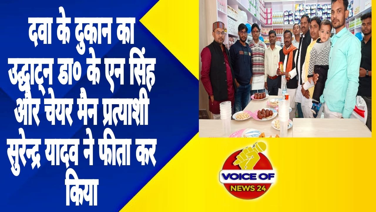 दवा के दुकान का उद्घाट्न डा० के एन सिंह और चेयर मैन प्रत्याशी सुरेन्द्र यादव ने फीता कर किया December 8, 2022
