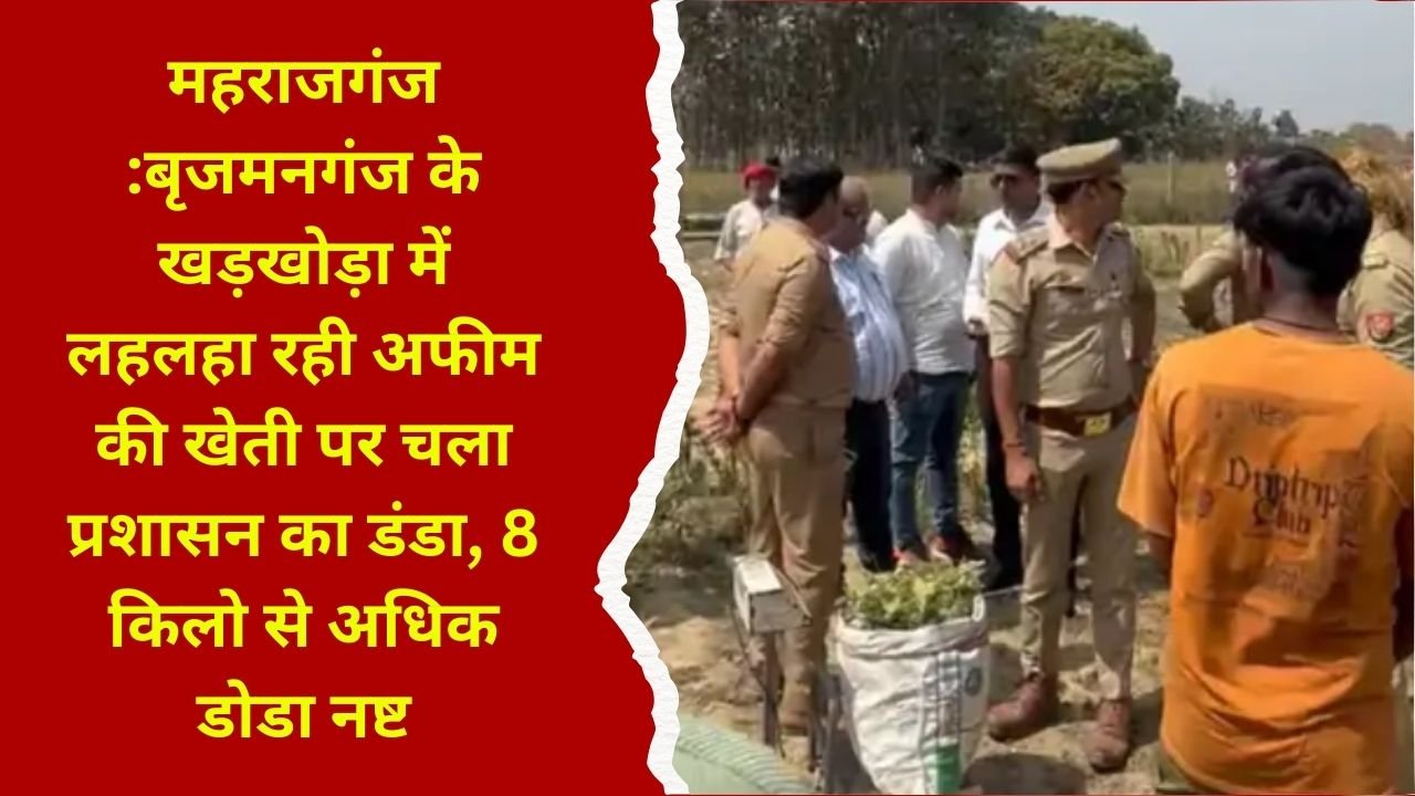 महराजगंज :बृजमनगंज के खड़खोड़ा में लहलहा रही अफीम की खेती पर चला प्रशासन का डंडा, 8 किलो से अधिक डोडा नष्ट March 18, 2026