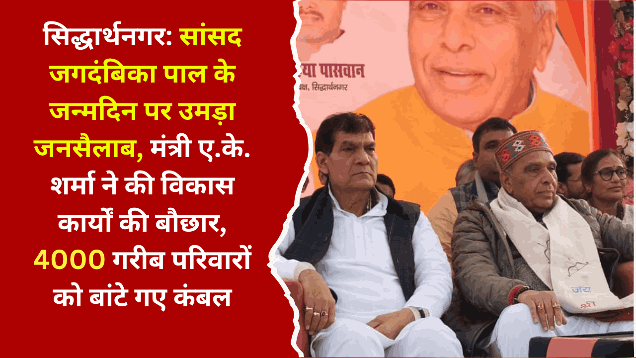सिद्धार्थनगर: सांसद जगदंबिका पाल के जन्मदिन पर उमड़ा जनसैलाब, मंत्री ए.के. शर्मा ने की विकास कार्यों की बौछार, 4000 गरीब परिवारों को बांटे गए कंबल January 2, 2026