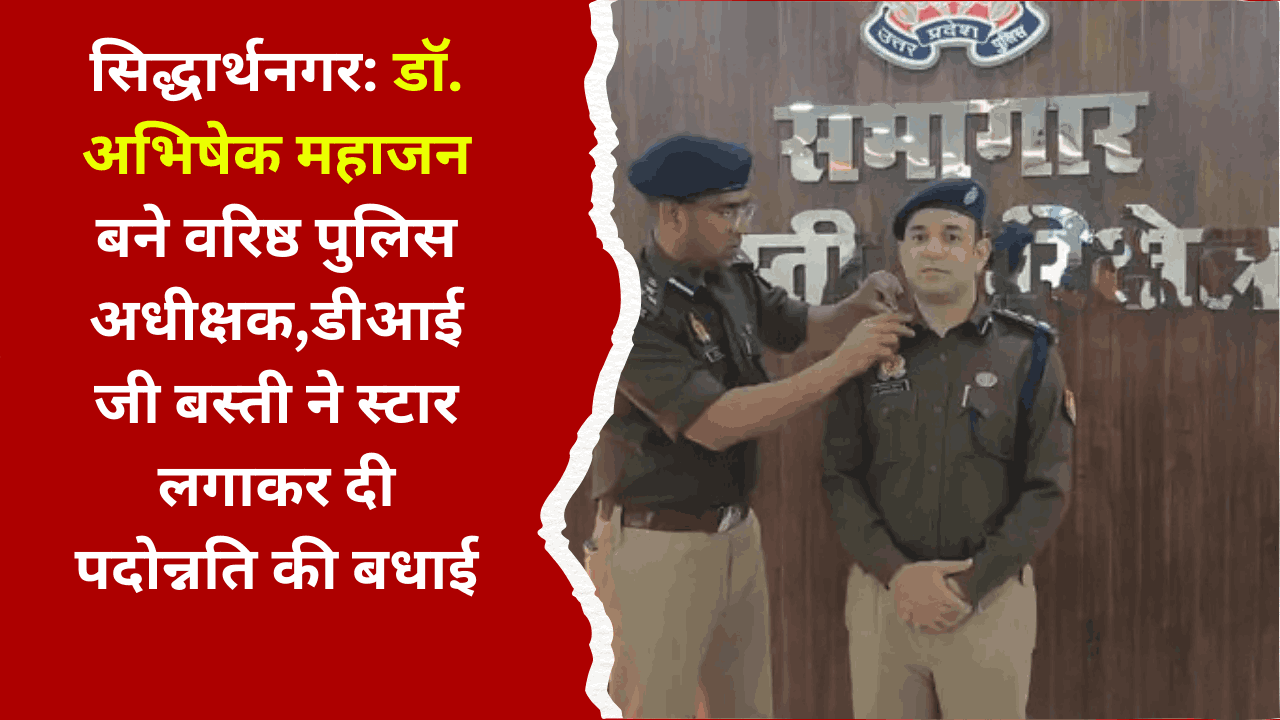 सिद्धार्थनगर: डॉ. अभिषेक महाजन बने वरिष्ठ पुलिस अधीक्षक,डीआईजी बस्ती ने स्टार लगाकर दी पदोन्नति की बधाई January 1, 2026