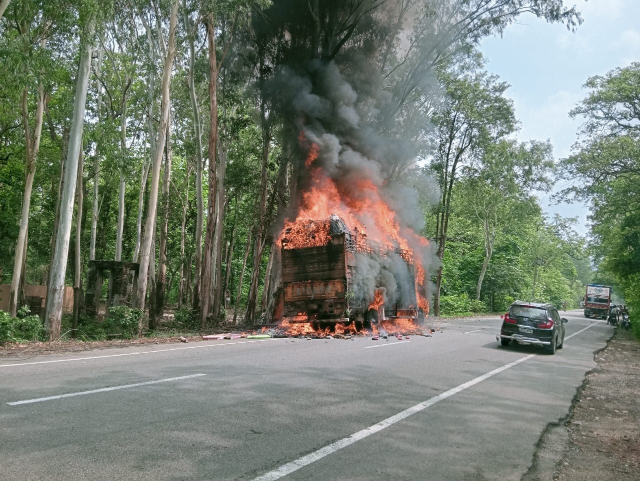 सहारनपुर : दिल्ली-देहरादून नेशनल हाईवे पर हाइटेंशन लाइन की चपेट में आने से आग का गोला बना ट्रक,मची अफरा-तफरी SURAJ KUMAR
