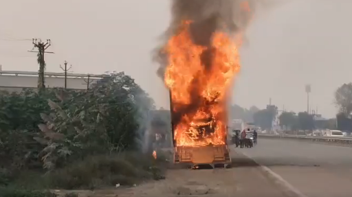अलीगढ़ :जट्टारी बाजार में चलती रोडवेज बस में लगी आग, यात्रियों को सुरक्षित निकाला गया Voice Of News 24