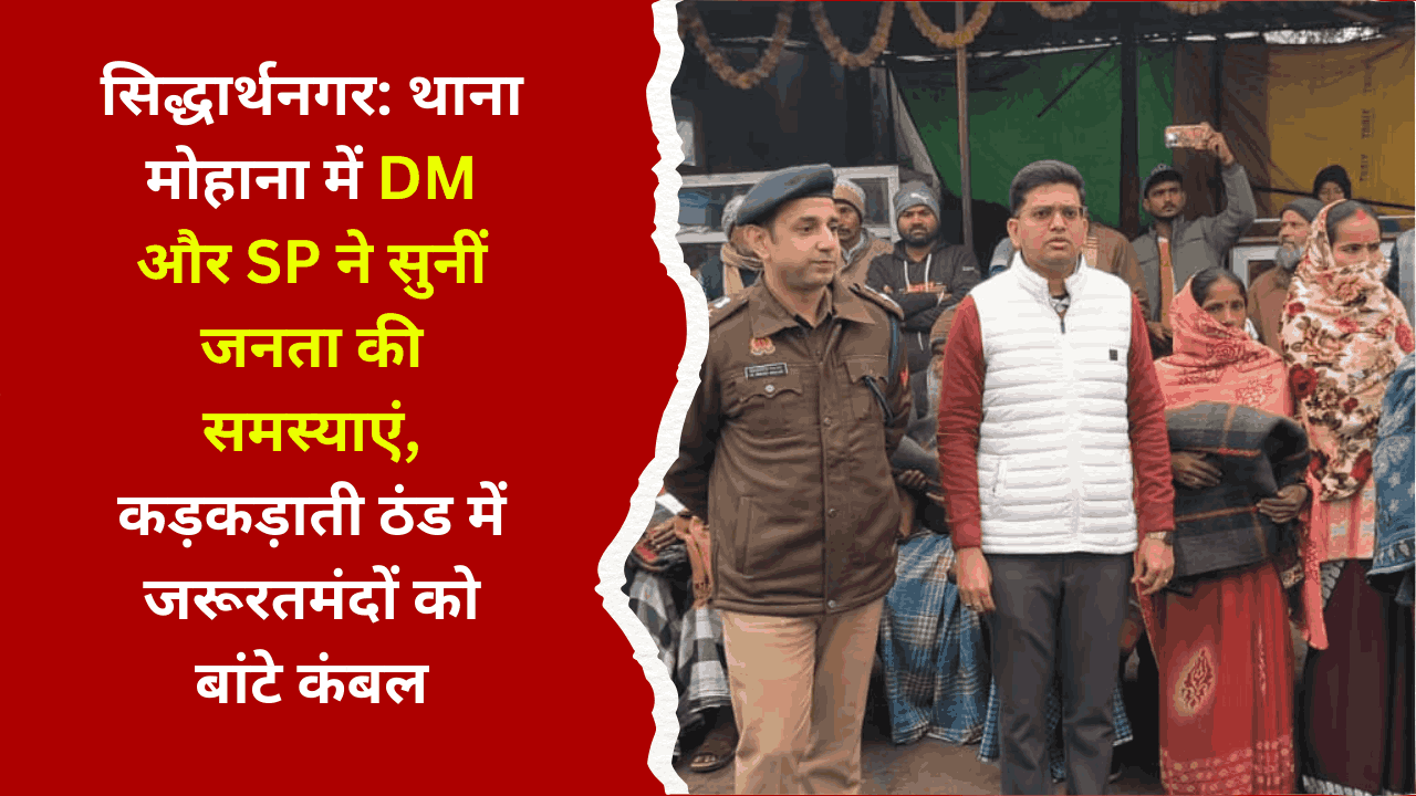 सिद्धार्थनगर: थाना मोहाना में DM और SP ने सुनीं जनता की समस्याएं, कड़कड़ाती ठंड में जरूरतमंदों को बांटे कंबल December 27, 2025