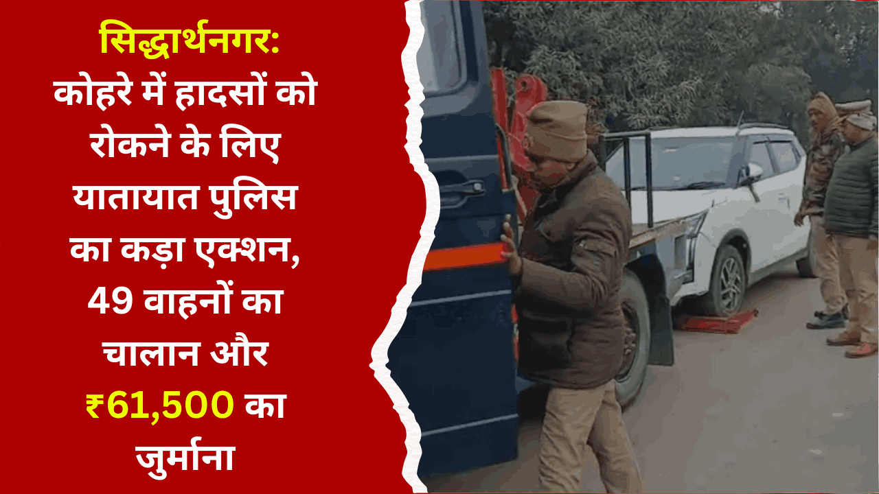 सिद्धार्थनगर: कोहरे में हादसों को रोकने के लिए यातायात पुलिस का कड़ा एक्शन, 49 वाहनों का चालान और ₹61,500 का जुर्माना December 27, 2025