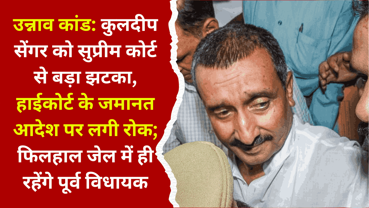 उन्नाव कांड: कुलदीप सेंगर को सुप्रीम कोर्ट से बड़ा झटका, हाईकोर्ट के जमानत आदेश पर लगी रोक; फिलहाल जेल में ही रहेंगे पूर्व विधायक December 29, 2025