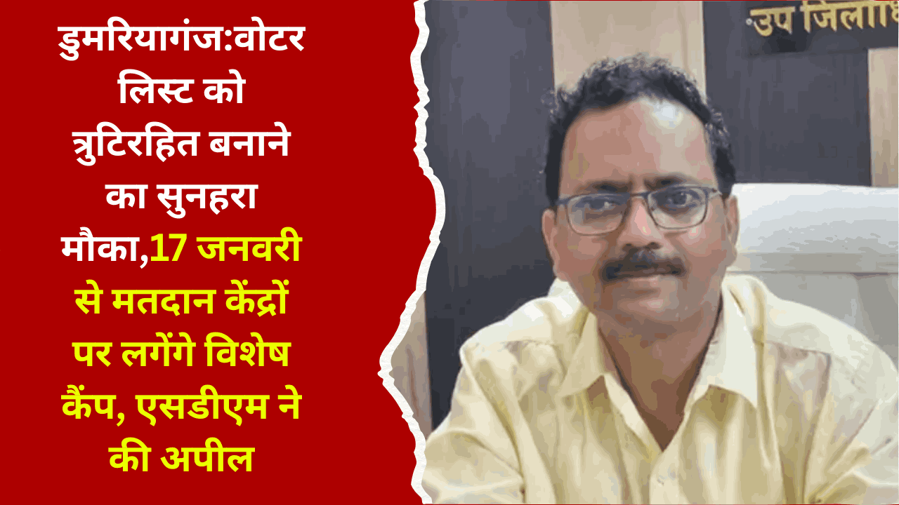 डुमरियागंज:वोटर लिस्ट को त्रुटिरहित बनाने का सुनहरा मौका,17 जनवरी से मतदान केंद्रों पर लगेंगे विशेष कैंप, एसडीएम ने की अपील January 16, 2026
