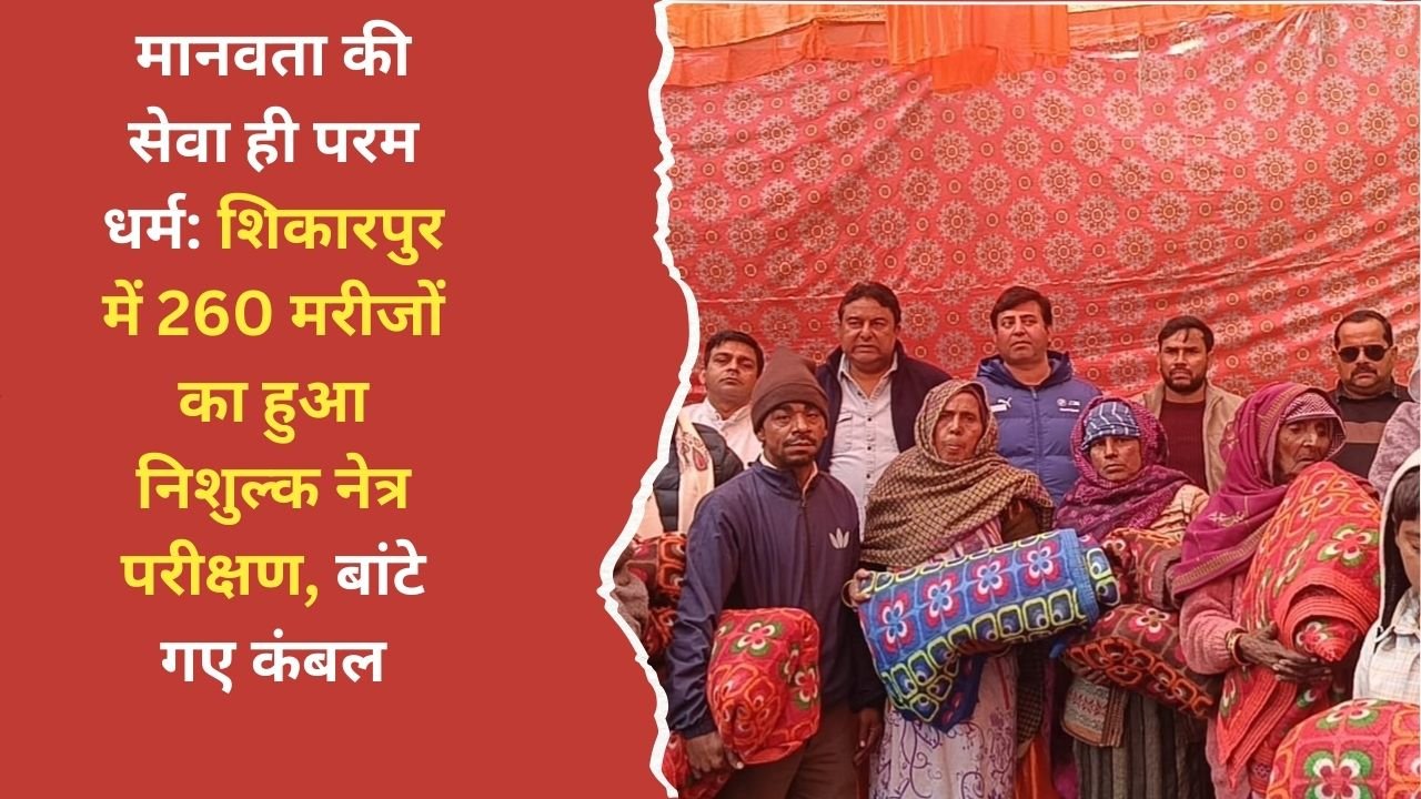मानवता की सेवा ही परम धर्म: शिकारपुर में 260 मरीजों का हुआ निशुल्क नेत्र परीक्षण, बांटे गए कंबल January 18, 2026