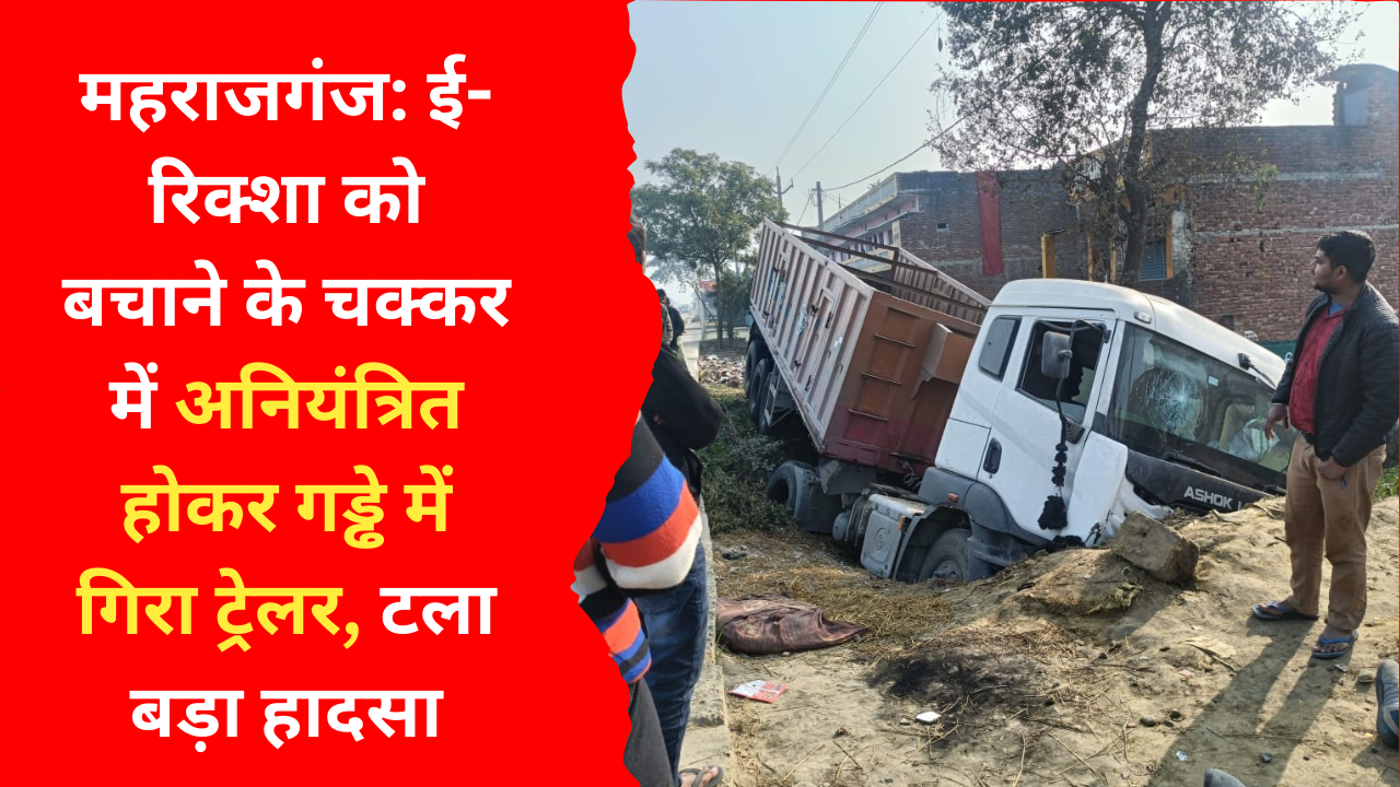 महराजगंज: ई-रिक्शा को बचाने के चक्कर में अनियंत्रित होकर गड्ढे में गिरा ट्रेलर, टला बड़ा हादसा January 19, 2026