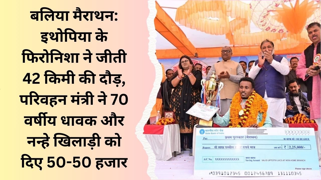 बलिया मैराथन: इथोपिया के फिरोनिशा ने जीती 42 किमी की दौड़, परिवहन मंत्री ने 70 वर्षीय धावक और नन्हे खिलाड़ी को दिए 50-50 हजार January 28, 2026
