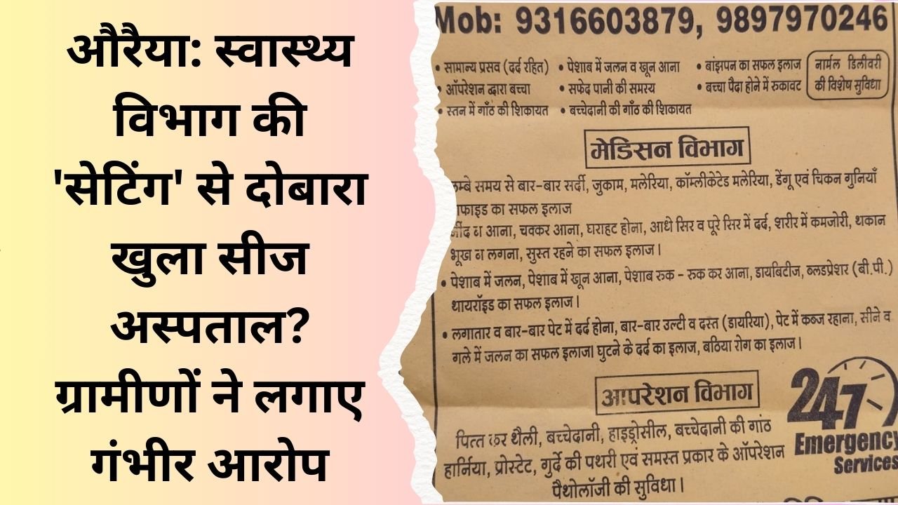 औरैया: स्वास्थ्य विभाग की ‘सेटिंग’ से दोबारा खुला सीज अस्पताल? ग्रामीणों ने लगाए गंभीर आरोप February 23, 2026