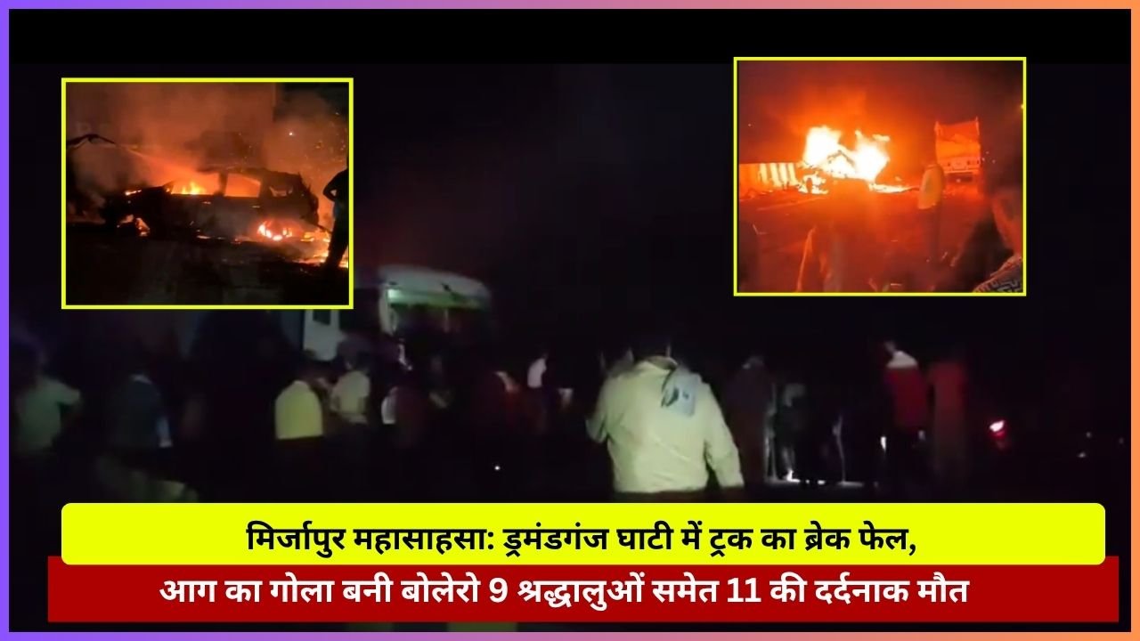 मिर्जापुर महासाहसा: ड्रमंडगंज घाटी में ट्रक का ब्रेक फेल, आग का गोला बनी बोलेरो 9 श्रद्धालुओं समेत 11 की दर्दनाक मौत April 23, 2026